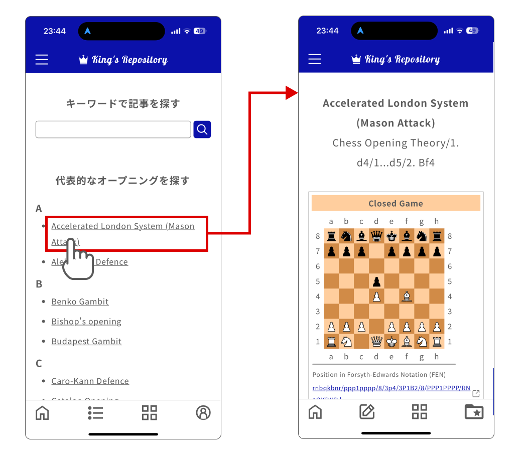 Wikibooksに掲載されているチェスに関する記事を集めた無料の学習ツールです。
