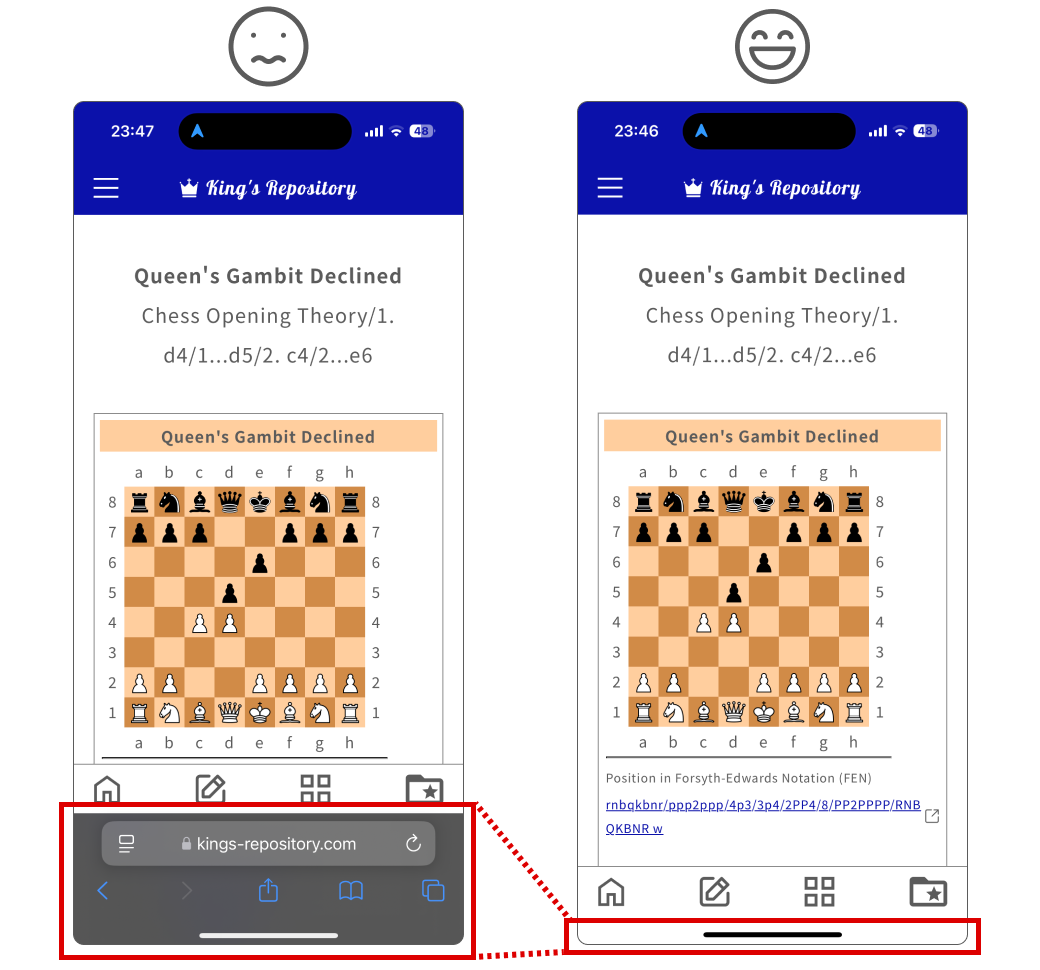 URLバーが出ない分、画面が大きくなるので、快適に閲覧できます。